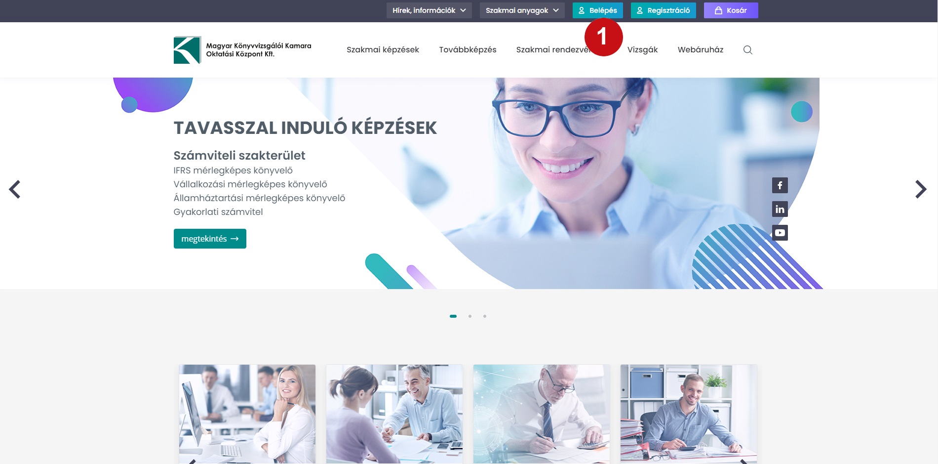 1. Bejelentkezéshez honlapunk - www.szamviteloktatas.hu - főoldalán, a legfelső sávban kattintson a "Belépés” gombra.